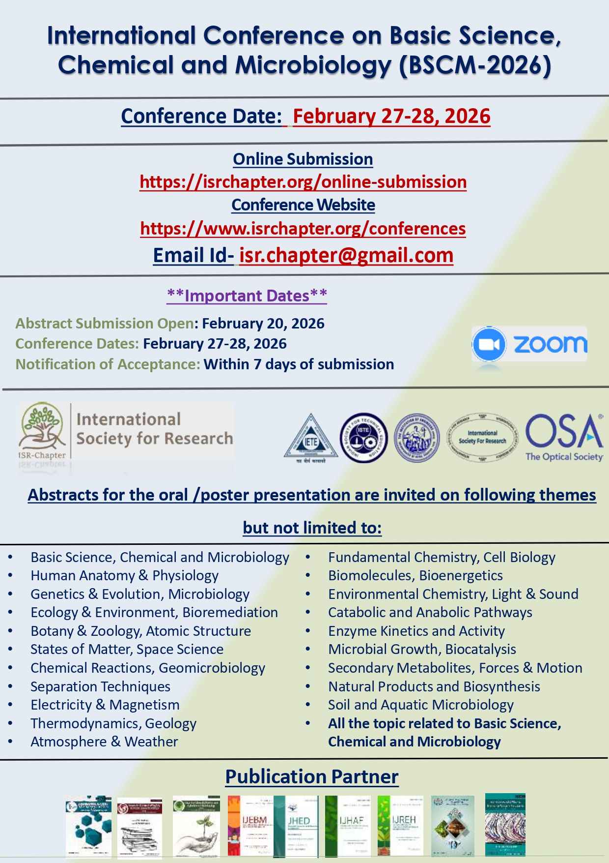 Contact E-mail id for any Query and Abstract Submission: isr.chapter@gmail.com