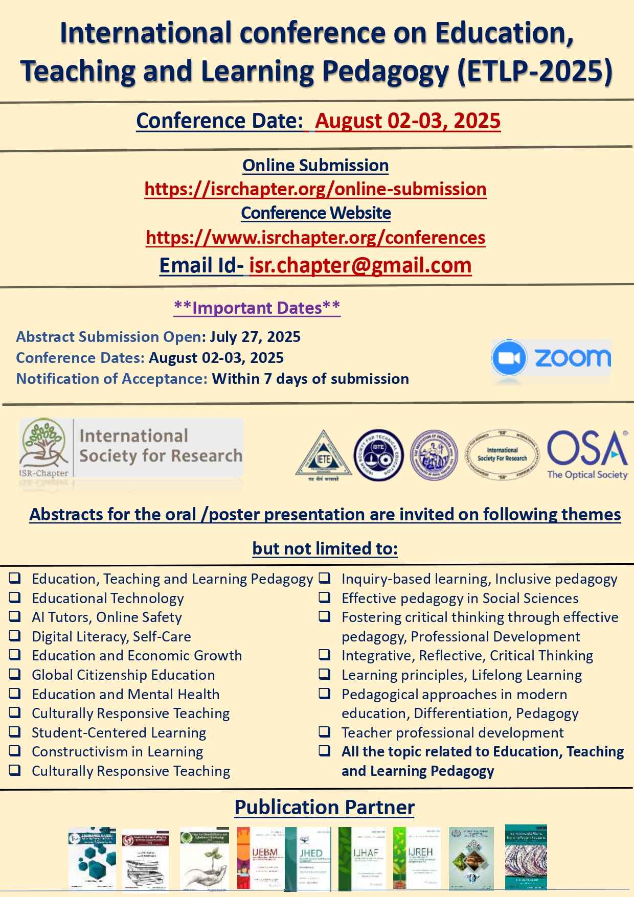 Education, Teaching and Learning Pedagogy (ETLP-2025)