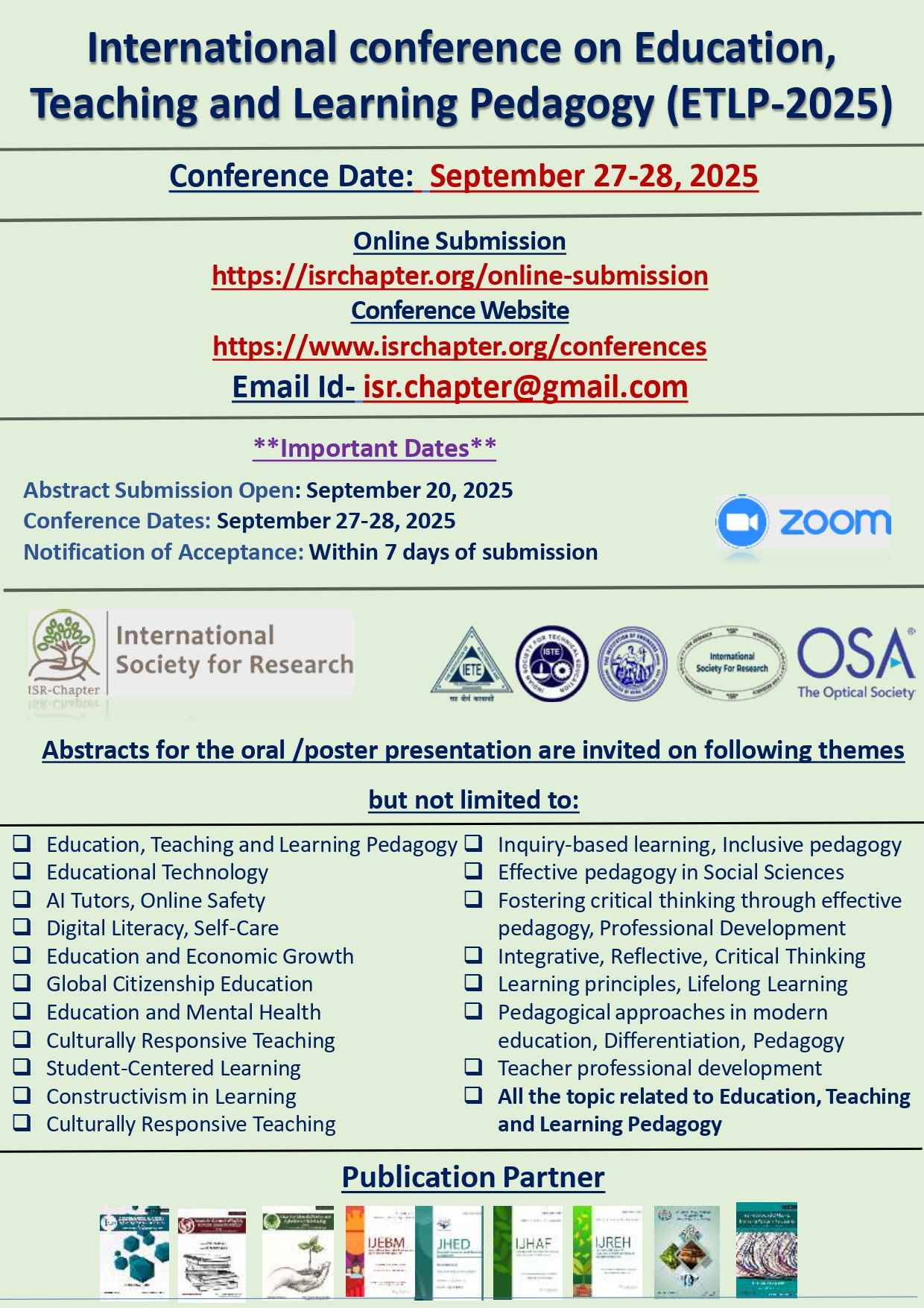Education, Teaching and Learning Pedagogy (ETLP-2025)