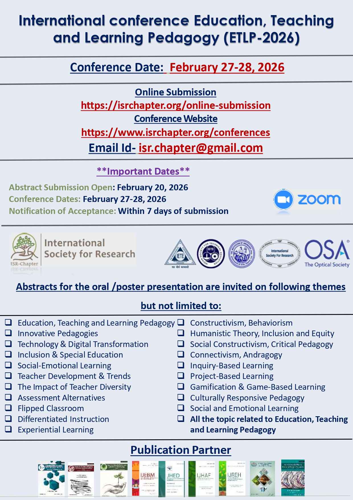 With this aim, to keep contributing to learning and motivation International Society for Research (ISR) is going to organize a two-day International Conference through Hybrid (Online and Offline Mode).