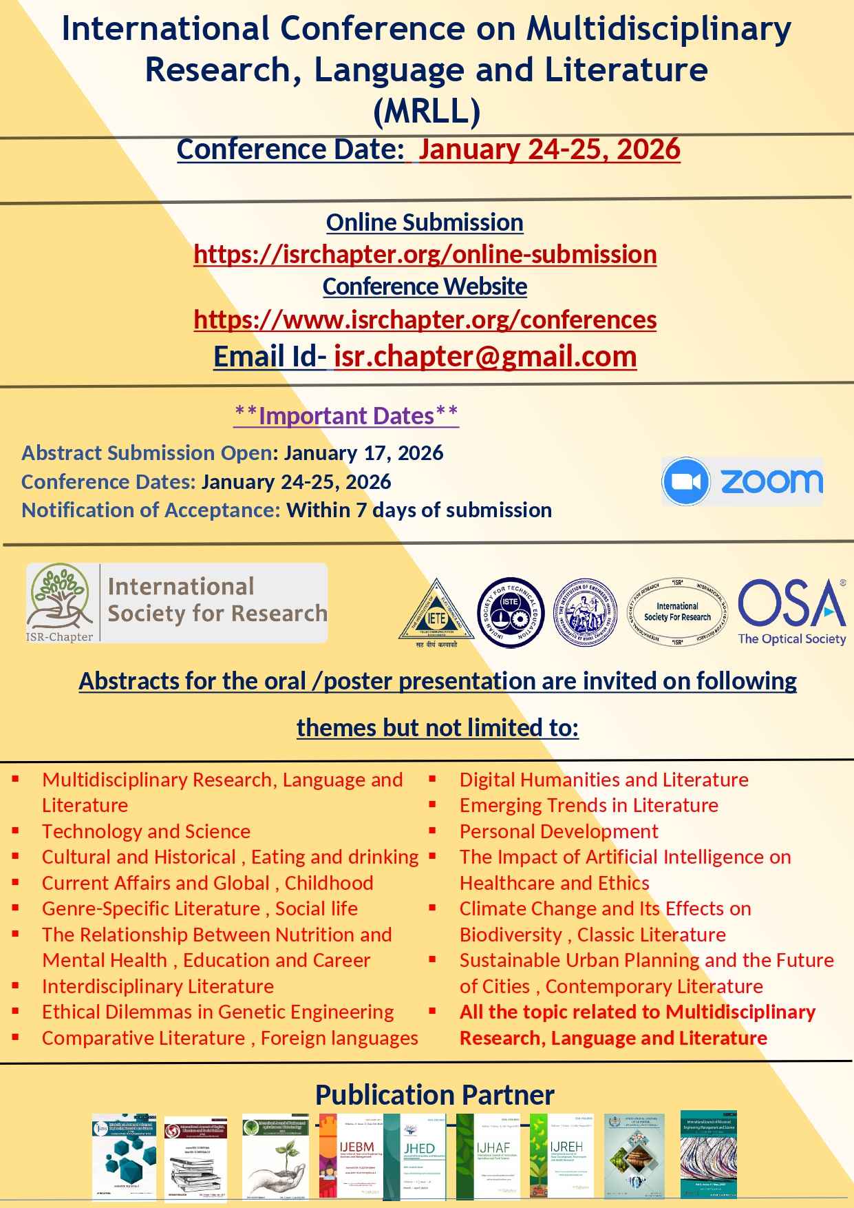 Abstract Submission email id: isr.chapter@gmail.com